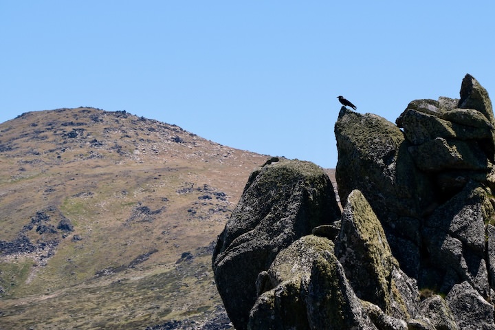 We stopped for morning tea in the shade amongst the rocks, enjoying the respite from the hot sun. There was no escaping the flies though. Perched nearby were ravens, who were to be constant companions on this walk. They congregated where there were boulders, sometimes keeping silent company, sometimes cawing to each other.