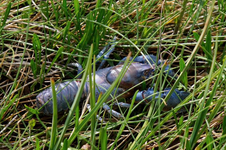 While I was collecting water for dinner I found the fully intact remains of two large freshwater crayfish, their shells retaining some blue colour. They looked as though they’d expired while walking around, and didn’t appear to have been caught by a predator.