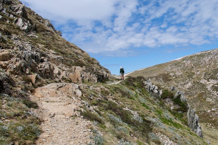 We finished packing and set off uphill to Muellers Pass. I struggled with a lack of energy, and needed to stop frequently to recover. Judging by how much I was drinking, I was still dehydrated. It was a relief to reach the Main Range Track as it was flatter and had a good surface.