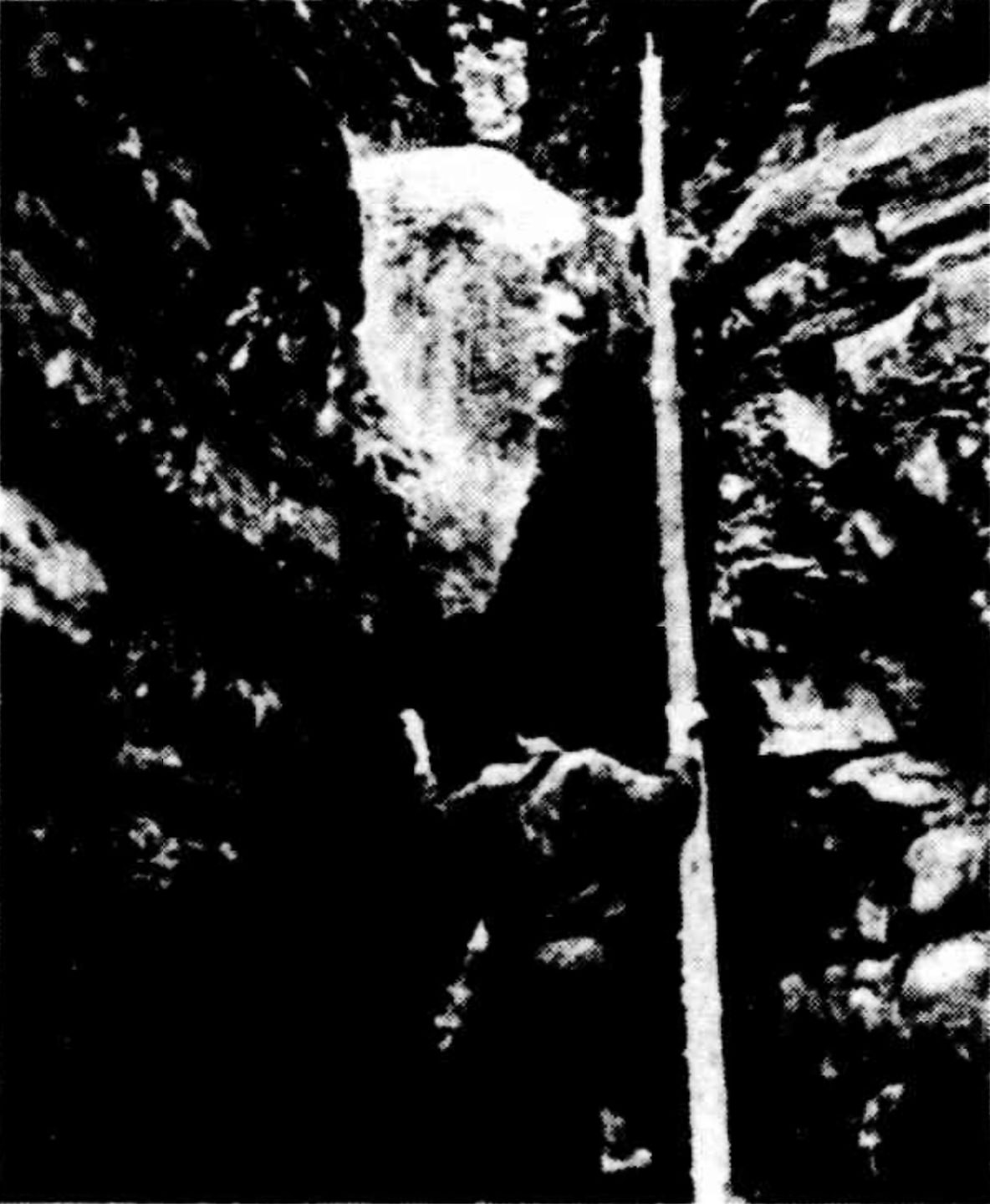An interesting gorge that we visited was one known as the “Gorge of Ferns.” The narrow entrance was blocked by a great wedged boulder or chockstone, over which we had to climb. We followed the defile, only six feet wide at first, until it opened into a small, steep-sided amphitheatre. The giant ferns which grew there years ago were no longer to be found. Perhaps they had died out during the recent drought.